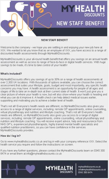 Keep staff in the know about MyHealthDiscounts, HealthiFlex with our pre-made email templates.